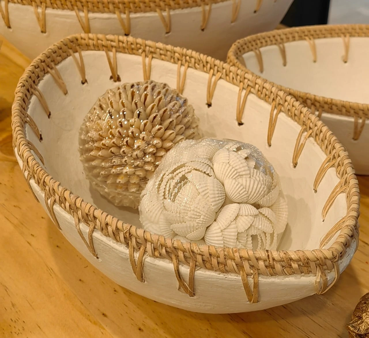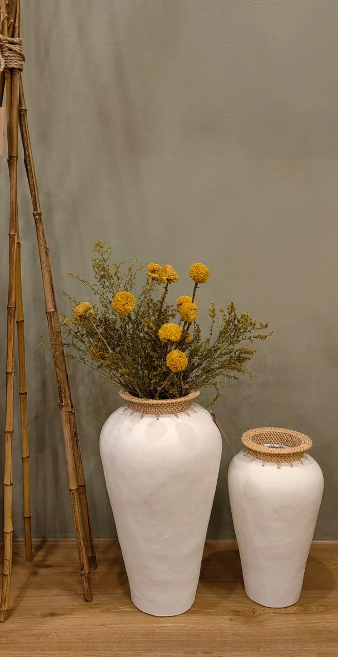 Terracotta Ginger Jar Vase with Handwoven Rattan